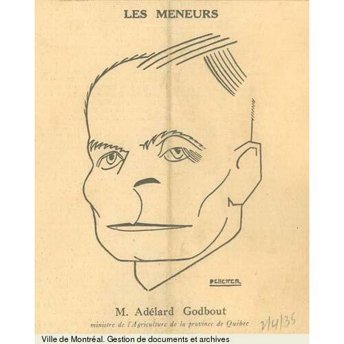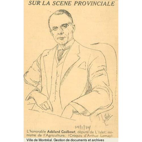 Godbout fait bonne impression. Son image de ministre compétent, intègre et modéré lui attire même les éloges des plus vigoureux adversaires du gouvernement, comme le quotidien montréalais le Devoir. Sa loyauté et sa capacité à défendre les politiques du gouvernement de manière convaincante – notamment face à Laurent Barré*, critique de l’opposition en matière d’agriculture et ancien président de l’Union catholique des cultivateurs, – lui font gagner l’estime de ses collègues du cabinet. À la suite de la création, en 1934, de l’Action libérale nationale par certains des éléments les plus réformateurs du Parti libéral [V. Paul Gouin*] et des scandales de l’administration Taschereau révélés, au printemps de 1936, lors des houleuses séances du comité des comptes publics, on évoque la possibilité du départ du premier ministre. Godbout s’impose comme un candidat de qualité pour remplacer le vieux chef, redorer l’image passablement ternie du parti et ramener les dissidents au bercail. Inquiets de la tournure des événements et revigorés par leur victoire aux élections fédérales de 1935, les députés libéraux fédéraux de la province de Québec, Ernest Lapointe* et Charles (Chubby) Gavan Power* en tête, participent activement aux discussions entourant la succession du premier ministre. Au terme de complexes transactions, Godbout s’impose comme un choix de compromis et devient, apparemment à son corps défendant, chef du Parti libéral et premier ministre le 11 juin 1936. L’Assemblée législative ayant été dissoute, à la demande de Taschereau, des élections générales sont convoquées pour le 17 août suivant. Avec l’aide de Lapointe, Godbout renouvelle entièrement le cabinet et bâtit un programme à la hâte. Cela ne suffit nettement pas pour renverser la tendance : l’Union nationale – nouveau parti né de la fusion de l’Action libérale nationale et du Parti conservateur provincial –, avec Maurice Le Noblet Duplessis comme chef, remporte haut la main les élections en récoltant plus de 56 % des suffrages et 76 des 90 sièges de l’Assemblée législative. Godbout n’échappe pas à la tempête qui emporte le Parti libéral : il est défait par quelques voix dans sa circonscription de L’Islet.