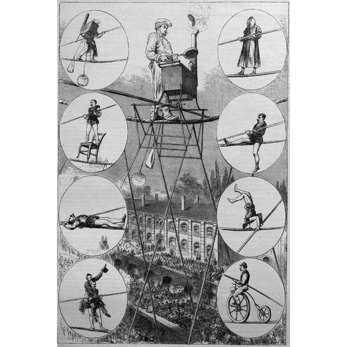 En 1861, le prince fit venir le grand funambule à Londres pour exécuter un numéro au Crystal Palace, à 180 pieds dans les airs, et par la suite Charles Blondin donna de nombreuses représentations en Angleterre et sur le continent. Après une brève retraite, il retourna sur la corde raide en 1880 et présenta son dernier spectacle à Belfast à l’âge de 72 ans.