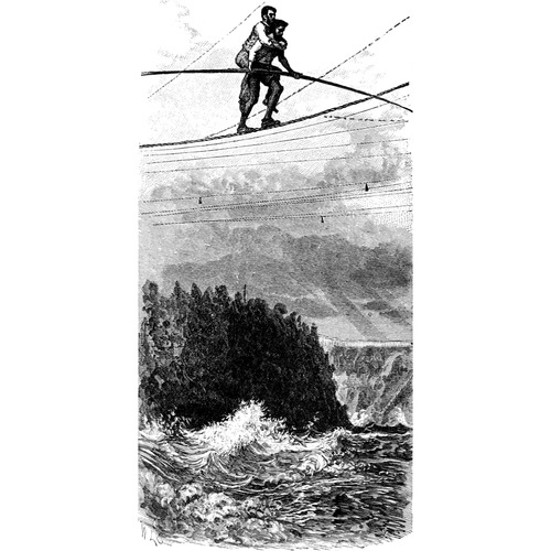 Jean-François Gravelet, qui prendrait plus tard le surnom de Blondin que sa chevelure pâle avait valu à son père, marcha pour la première fois sur une corde raide à l’âge de cinq ans. Comme c’était une corde à linge tendue entre deux chaises de cuisine, il tomba. Ce fut sa dernière chute, même s’il allait continuer à se balader sur des cordes jusqu’à plus de 70 ans. « Le petit prodige », comme on l’annonçait, fit sa première apparition sur scène à huit ans et devint rapidement une étoile de music-hall et de cirque en France et en Grande-Bretagne. Phineas Taylor Barnum, le forain, l’emmena en Amérique du Nord avec une troupe d’acrobates aériens. En 1859, Blondin, qui faisait alors ses spectacles en solo, arriva aux chutes du Niagara et annonça qu’il traverserait le terrible ravin.