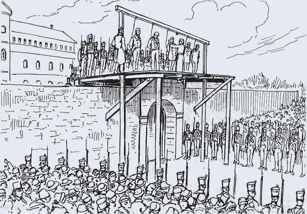 La nouvelle que des exécutions étaient imminentes arriva à la prison de Montréal le 12 février 1839 puis, le lendemain, la liste des cinq condamnés désignés pour la pendaison fut connue. Le 15 février, à neuf heures du matin, Hindenlang monta bravement à l’échafaud, assisté du docteur John Bethune*, rector de la Christ Church, à Montréal. Il fit un petit discours et cria « Vive la liberté ! ». Il avait rédigé ce discours en plusieurs exemplaires à partir de six heures du matin, afin que les autres prisonniers le copient et le fassent circuler. L’historien Mason Wade a pu dire qu’Hindenlang avait été condamné parce qu’il avait « refusé de donner des informations à l’État pour avoir la vie sauve ». Le fait est vraisemblable, encore qu’on ne pourra jamais savoir s’il était venu d’abord courir l’aventure de la liberté ou établir le commerce de son père. La postérité a voulu garder un bon souvenir de sa mort courageuse à côté de Chevalier de Lorimier, d’Amable Daunais, de François Nicolas et de Pierre-Rémi Narbonne.