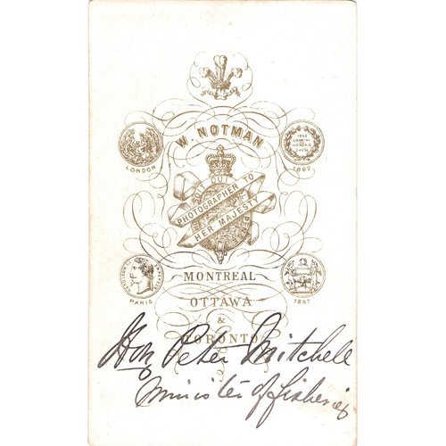 MITCHELL, PETER, avocat, homme d’affaires, homme politique, auteur et fonctionnaire, né le 4 janvier 1824 à Newcastle, Nouveau-Brunswick, fils de Peter Mitchell et de Barbara Grant ; le 9 mars 1853, il épousa à Saint-Jean, Nouveau-Brunswick, Isabella Carvell, veuve de James Gough et sœur de Jedediah Slason Carvell, et ils eurent une fille ; décédé le 24 octobre 1899 à Montréal.