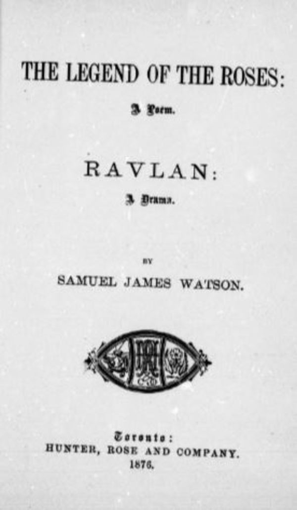 Outre les textes qu’il écrivit pour les quotidiens, Watson fit paraître divers ouvrages. En 1870, il publia dans le Canadian Illustrated News un roman-feuilleton historique intitulé « The peace-killer ; or, the massacre of Lachine ». Ayant pour cadre les guerres franco-iroquoises de la fin du xviie siècle, cette histoire, qui ressemble aux romans populaires du milieu du xixe siècle, raconte un conflit opposant un mauvais Abénaquis et un bon chef huron dont la sœur est amoureuse d’un courageux soldat français. En 1874, Watson fit paraître le premier volume d’une œuvre intitulée The constitutional history of Canada (le second volume était inachevé à sa mort), qui étudie le Canada sous l’angle de ses origines dans la constitution britannique. C’est en 1876 que parut Ravlan [...], drame poétique se déroulant dans l’Angleterre celtique, accompagné d’un long poème, The legend of the roses [...]. Inspirée d’un texte médiéval, Voiage and travayle of John Maundeville, Kt., cette légende relate l’histoire d’une jeune chrétienne qui échappe au bûcher lorsque le Christ transforme le feu en roses rouges et blanches. La poésie se révèle soignée mais donne trop souvent lieu à des digressions philosophiques sur de graves sujets. Œuvre de qualité inférieure à plusieurs égards, Ravlan constitue un exemple caractéristique du drame poétique qui avait cours à cette époque au Canada, avec son ton et son vocabulaire faussement shakespeariens, son style prolixe et pompeux, son intrigue conventionnelle, mélodramatique et si tuée dans un passé lointain, et sa conclusion tragique. Enfin, en 1880, Watson publia The powers of Canadian parliaments où il étudie le gouvernement de l’Ontario par rapport à celui du Canada, au gouverneur général et au parlement britannique. Cette étude paraît étonnamment fouillée, si l’on considère que son auteur n’était ni un spécialiste en droit constitutionnel, ni un érudit.